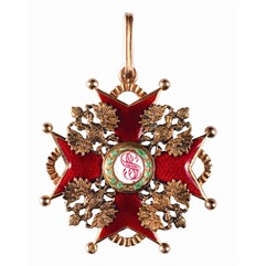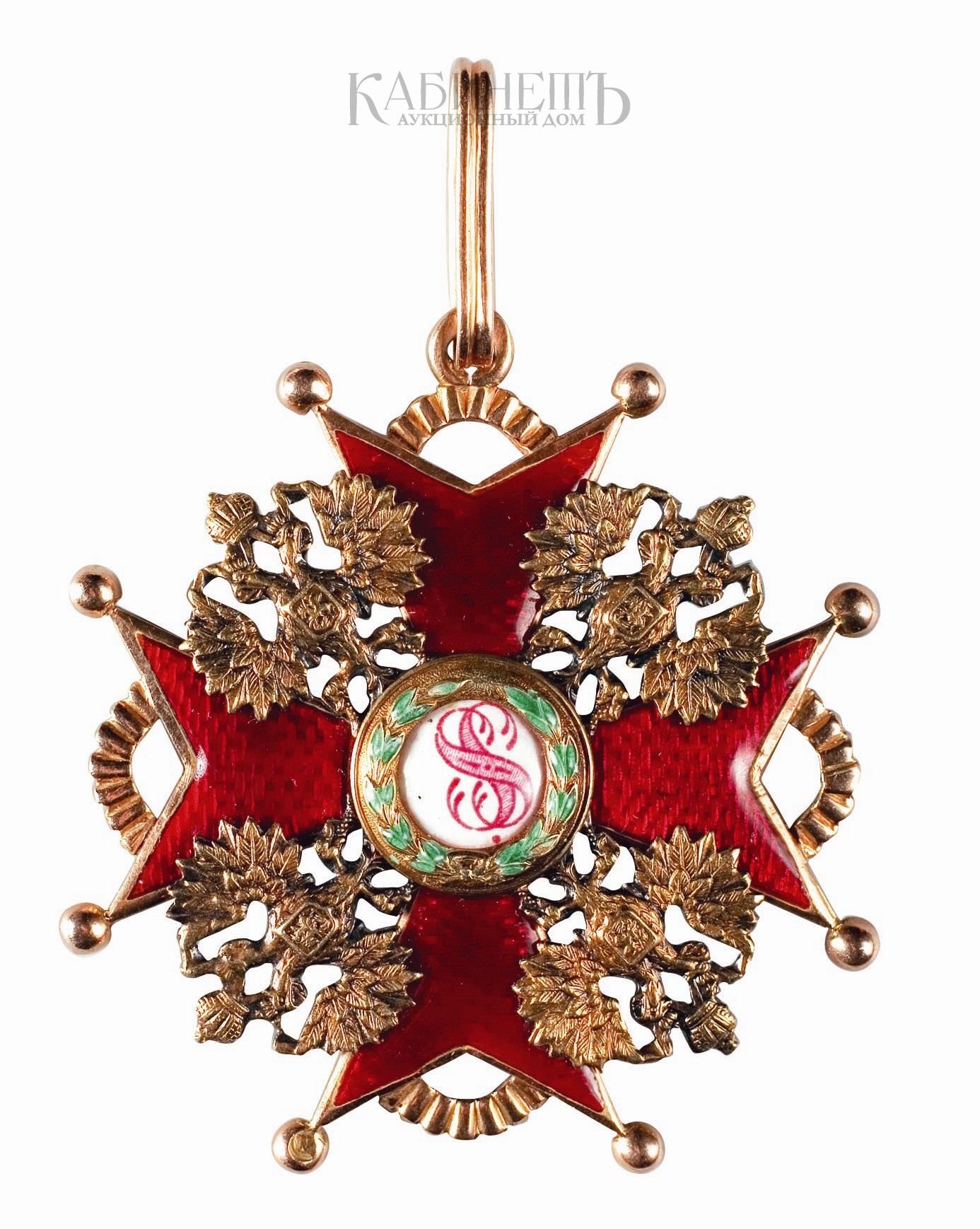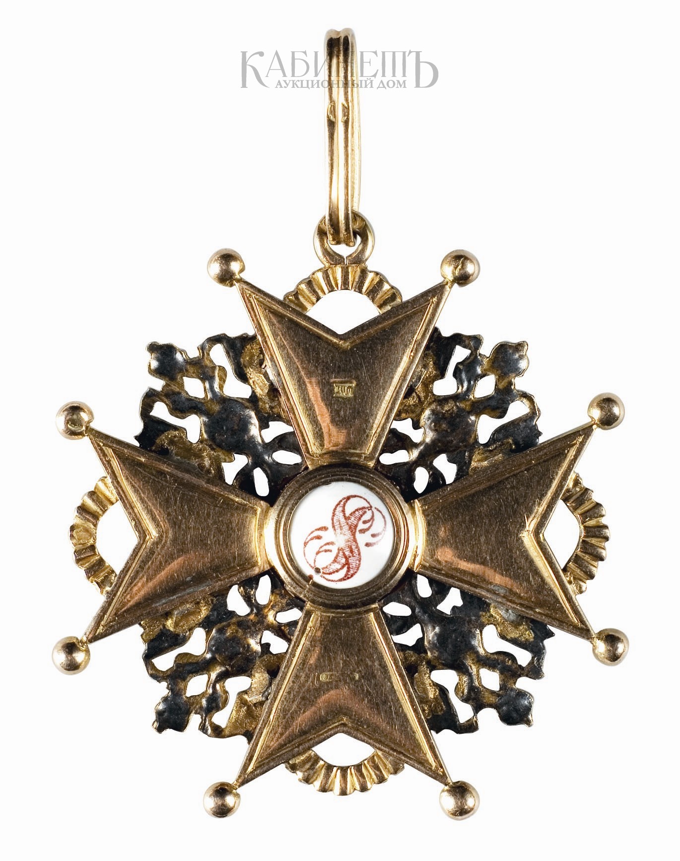 Клейма: на оборотной стороне на ушке – 56-й пробы с женской головкой в кокошнике, повернутой вправо; на верхнем луче – именник «ИЛ», на нижнем луче – развернутое клеймо «Эдуардъ».