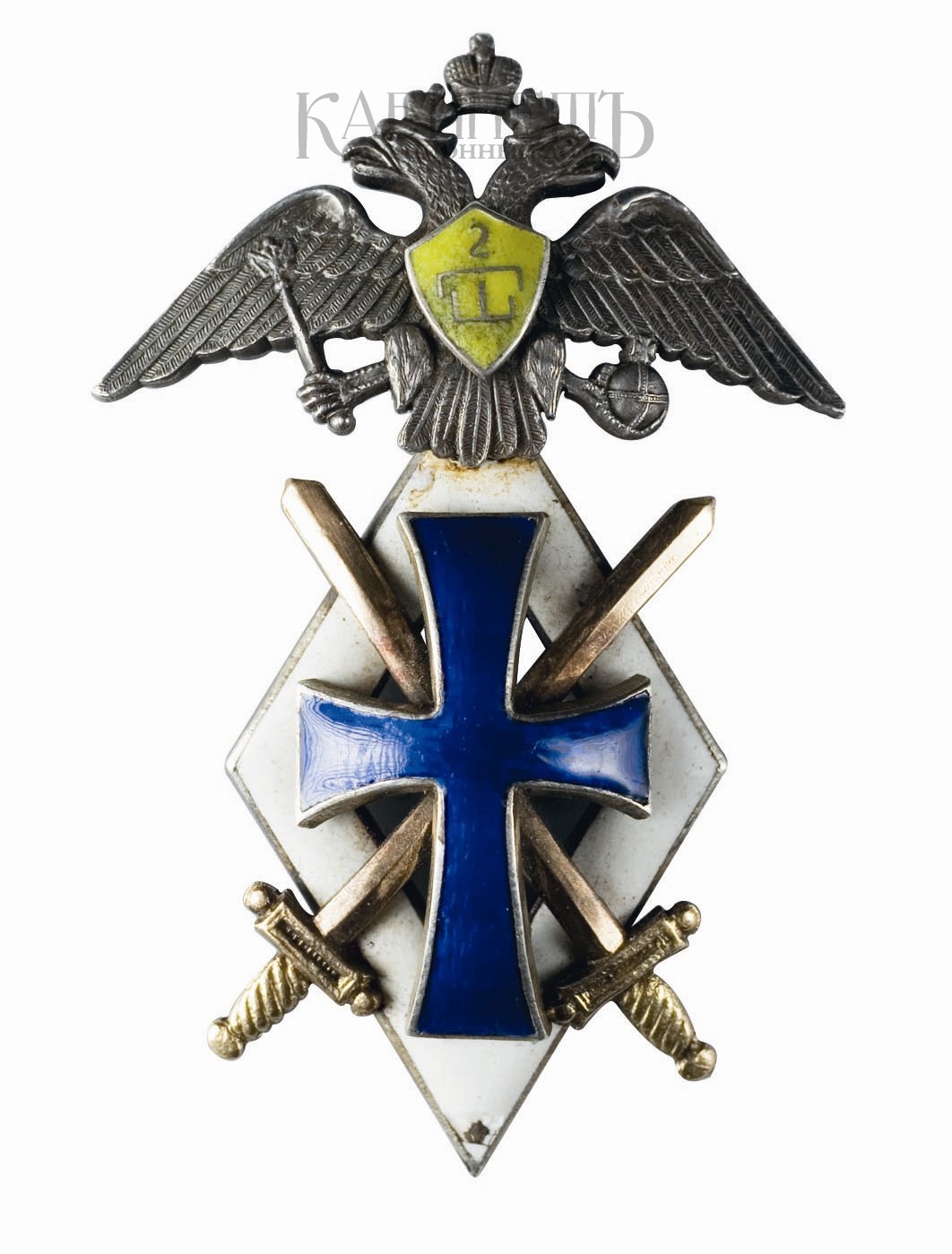 Российская Империя, частная мастерская, 1916-1917 гг. Размер 54 х 36 мм. Вес 19,2 г. Белый металл, эмаль, позолота Патрикеев, Бойнович 1 1.7.1