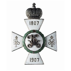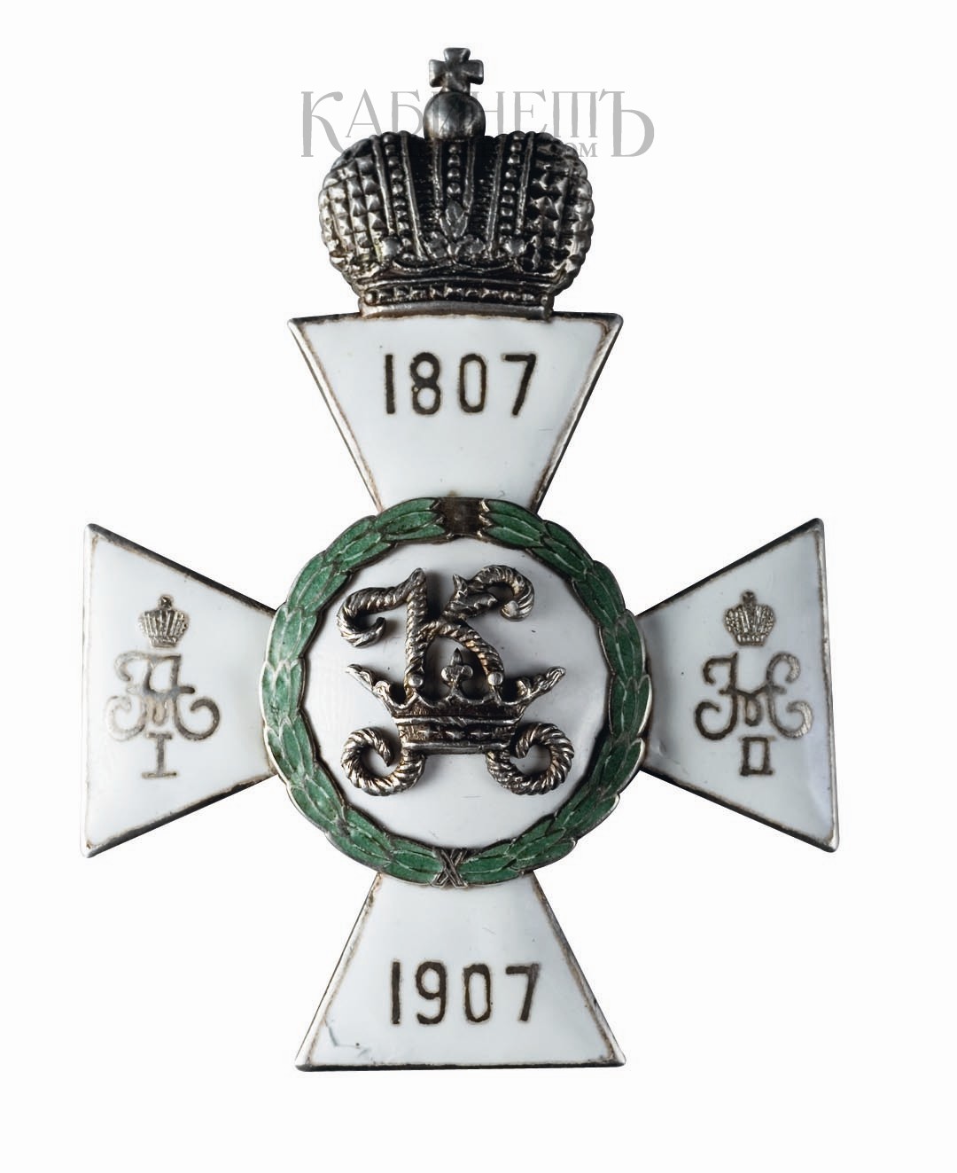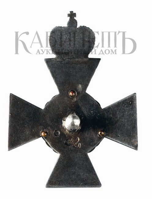 Клейма: на оборотной стороне знака – 84-й пробы с женской головкой в кокошнике, повернутой вправо, именник «ГК», знак удостоверения; на шайбе – именник «АР.», знак удостоверения.