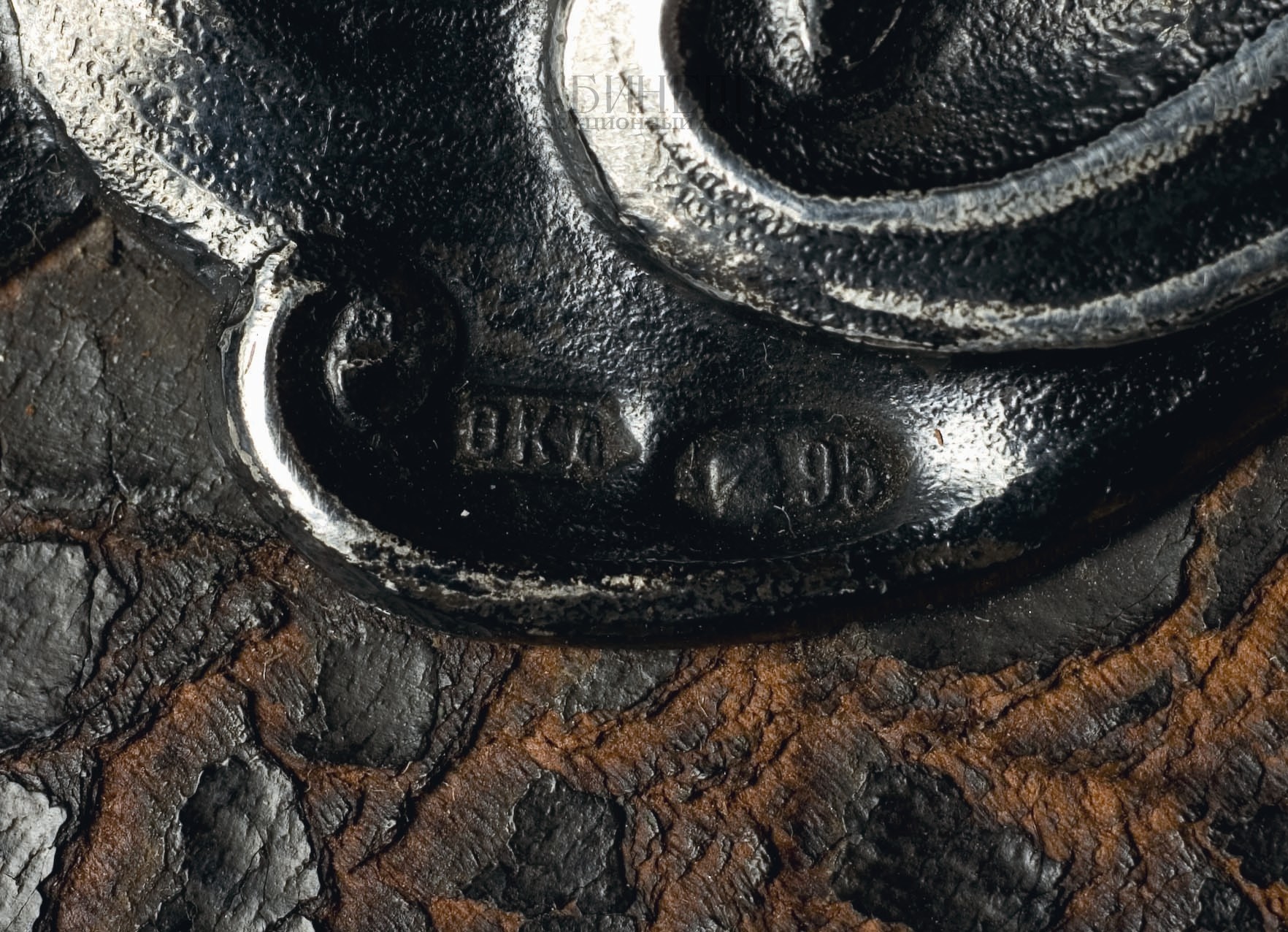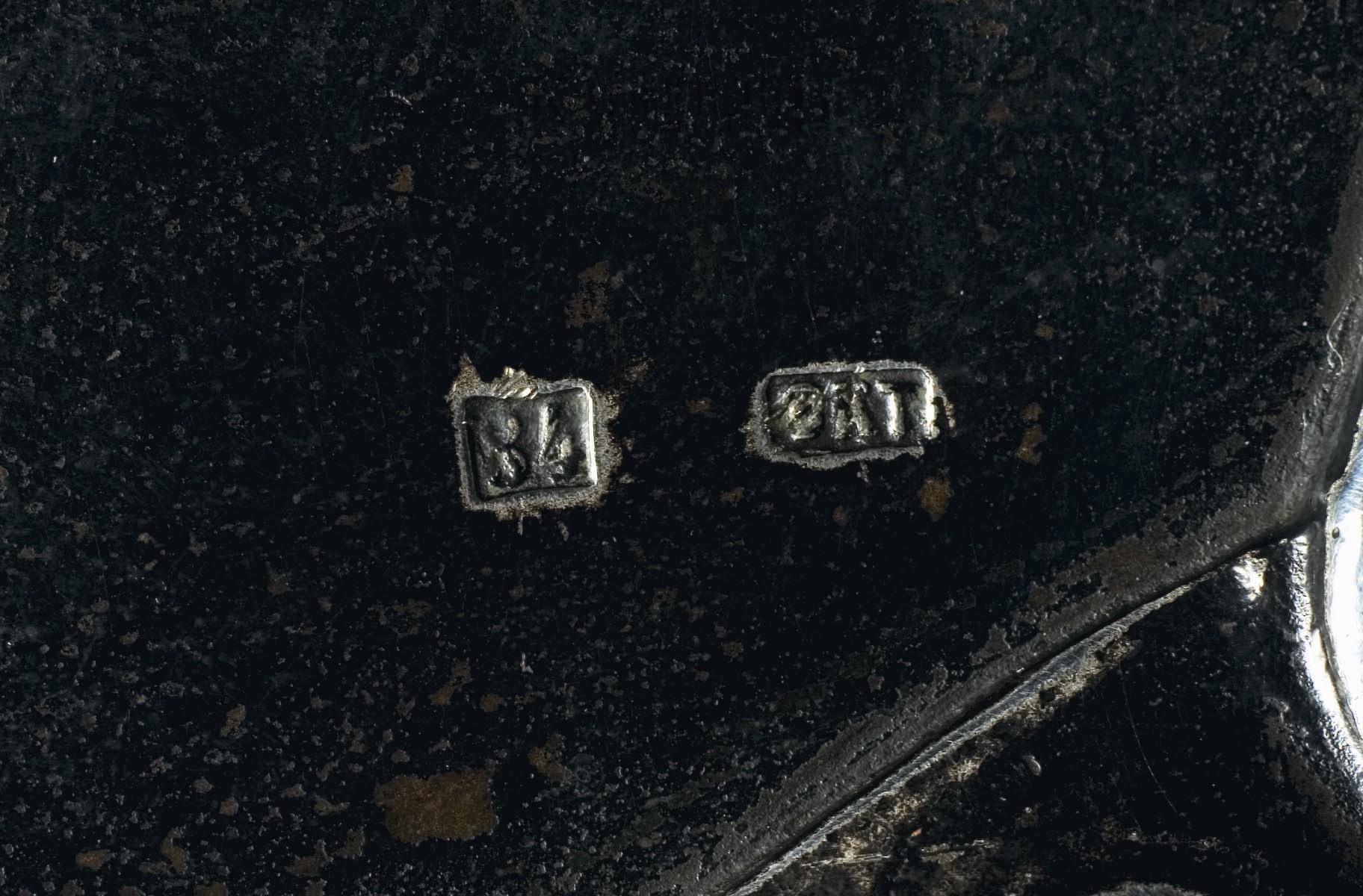 Клейма: 84-й пробы, 95-й пробы с женской головкой в кокошнике, повернутой вправо с шифром пробирного округа, мастерской – «ФКТ».