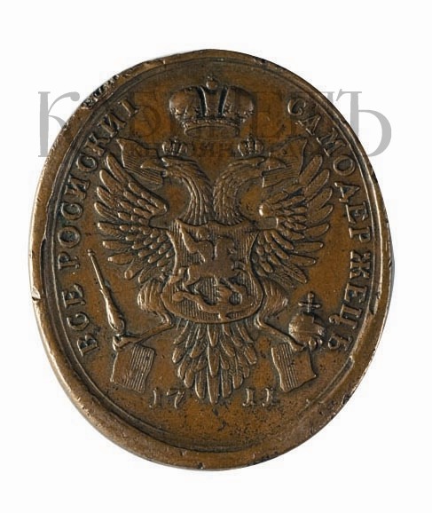 Санкт-Петербургский монетный двор. Копия XIX в Размер 41,5х35,5 мм. Вес 34,6 г. Бронза Дьяков 40.2, Смирнов 196.а
