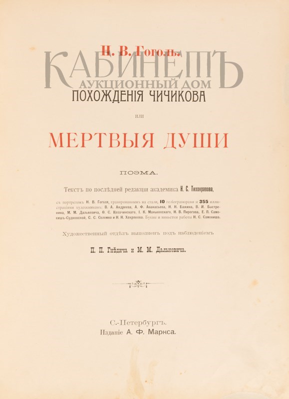 выполнен под наблюдением П.П. Гнедича и М.М. Далькевича. СПб., издание А.Ф. Маркс, [1900].