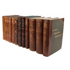 Экземпляр в издательских полукожаных переплетах, с золотым тиснением по корешкам и крышкам, большие короны, реставрация корешков, углы, ляссе и форзацы современные,потертости крышек, золотые обрезы «головка», торшонированные обрезы.