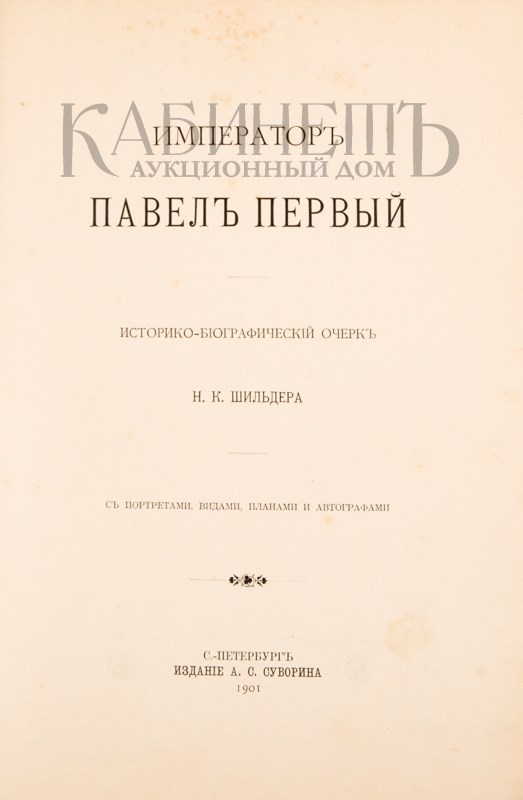 1) Шильдер Н.К. Император Павел I. Историко-биографический очерк Н.К. Шильдера. СПб., издание А.С. Суворина, 1901.