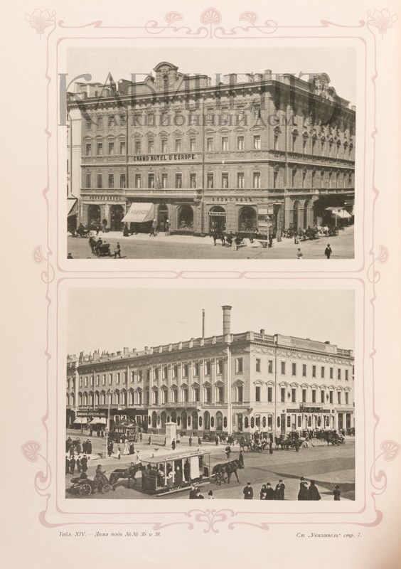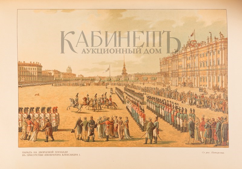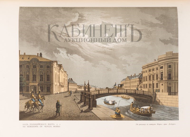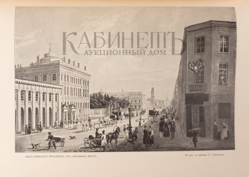 Экземпляр в современных подарочных полукожаных переплетах, с золотым тиснением по верхним крышкам и корешкам, под переплетом сохранена издательская обложка, издательские обложки дублированы на современную бумагу, следы от сведенных штампов, а также следы от выведенных штампов на стр. 17. Блоки в хорошем состоянии.