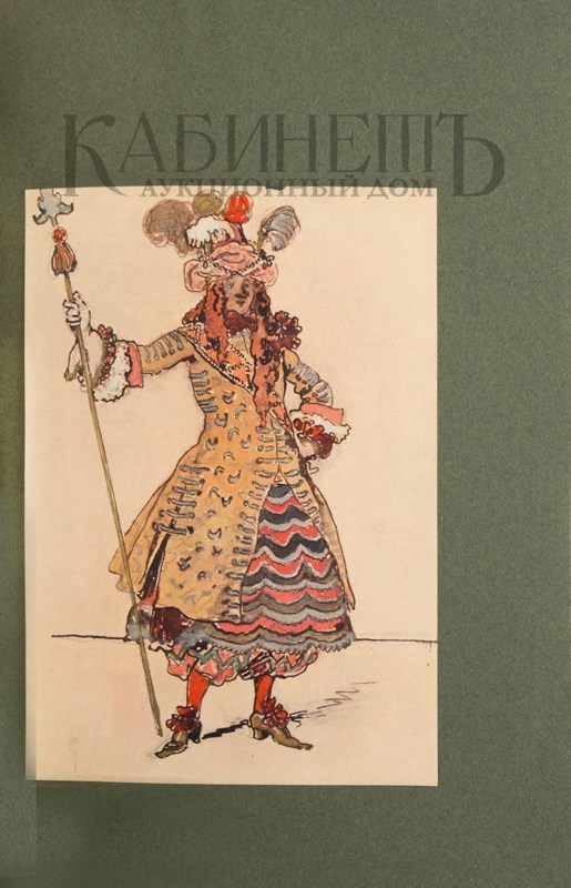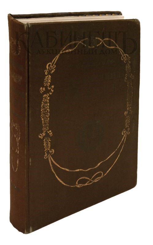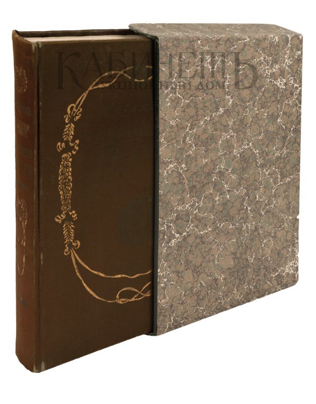 Экземпляр в издательском тканевом переплете работы художника Е. Лансере. Золотое тиснение по верхней крышке и корешку. Форзацы из бумаги геометрического орнамента. В современном футляре. В очень хорошей сохранности. Кальки преимущественно сохранены. Листы с иллюстрациями подклеены к блоку. На верхней крышке выцветшие фамилия автора, название, иллюстрация. Пометы на свободном листе нахзаца.