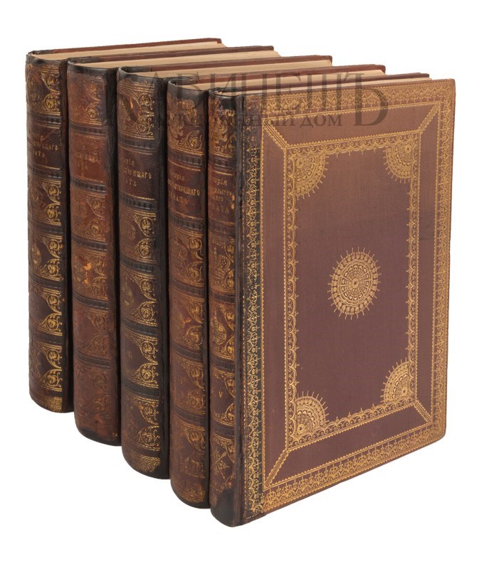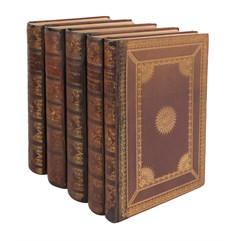 Экземпляр в роскошных подносных старинных цельнокожаных переплетах с золотым тиснением по корешку и крышкам, незначительная реставрация краешков корешков.