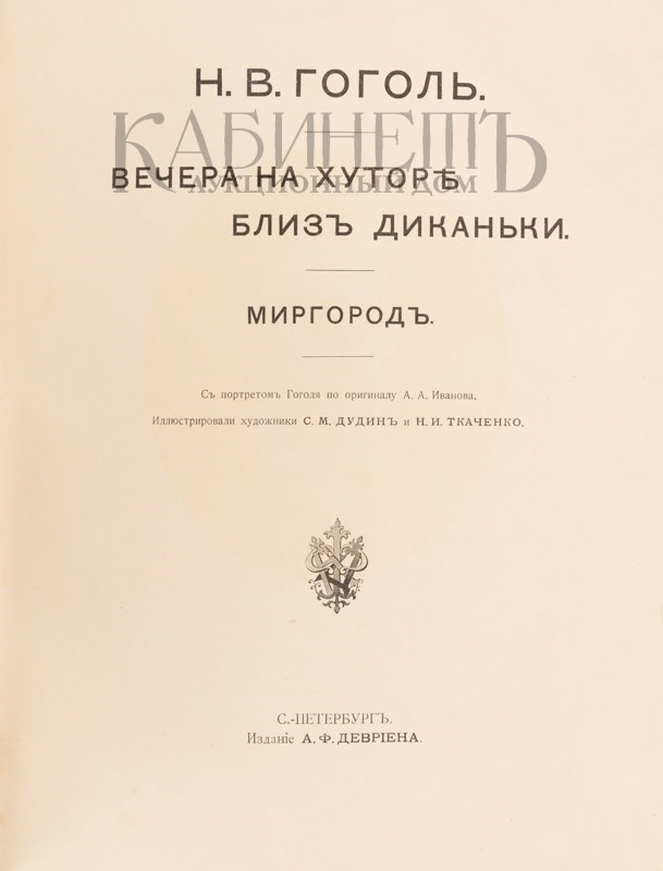 Гоголь Н. Вечера на хуторе близ Диканьки. Миргород. СПб., издание А.Ф. Девриена, Типография А. Бенке, 1911.