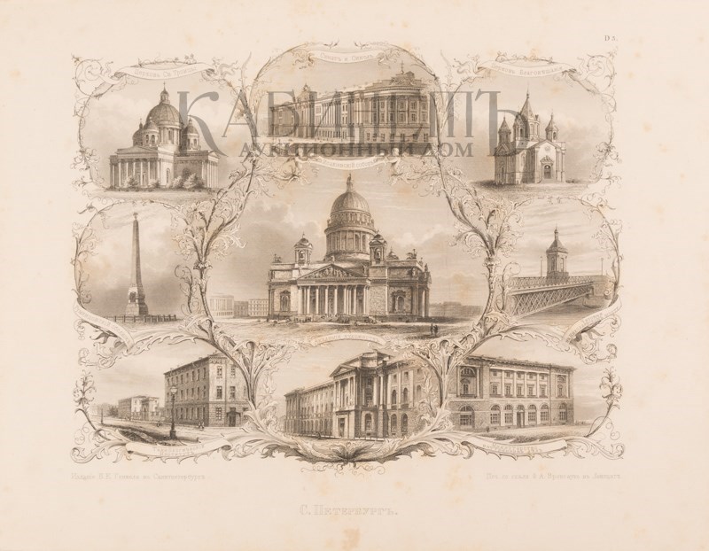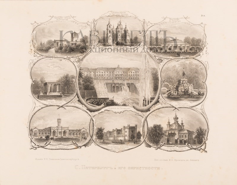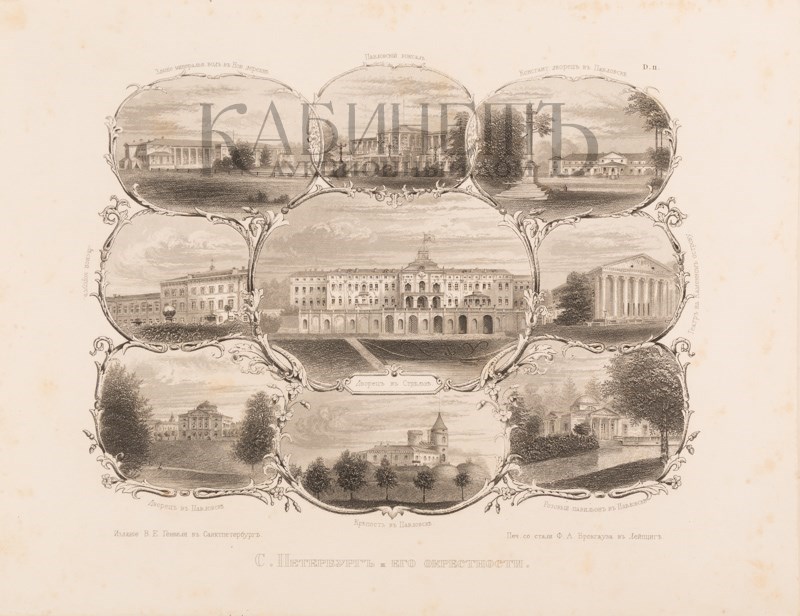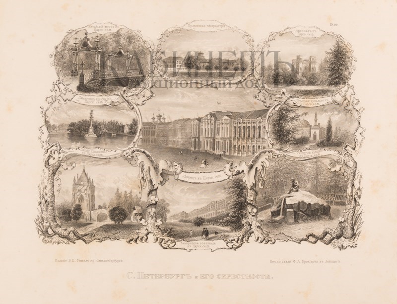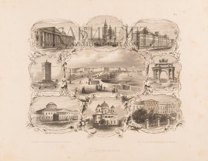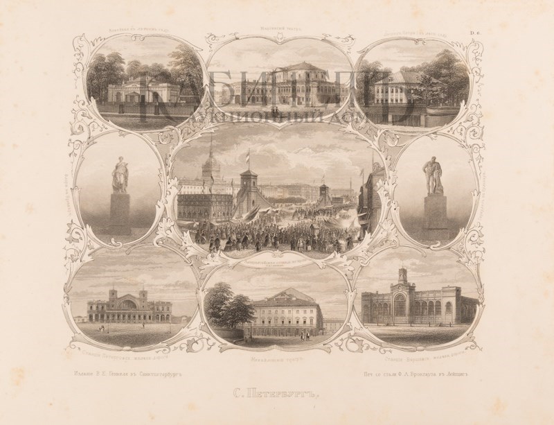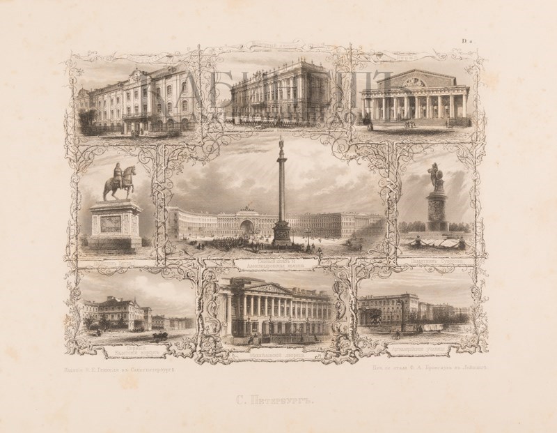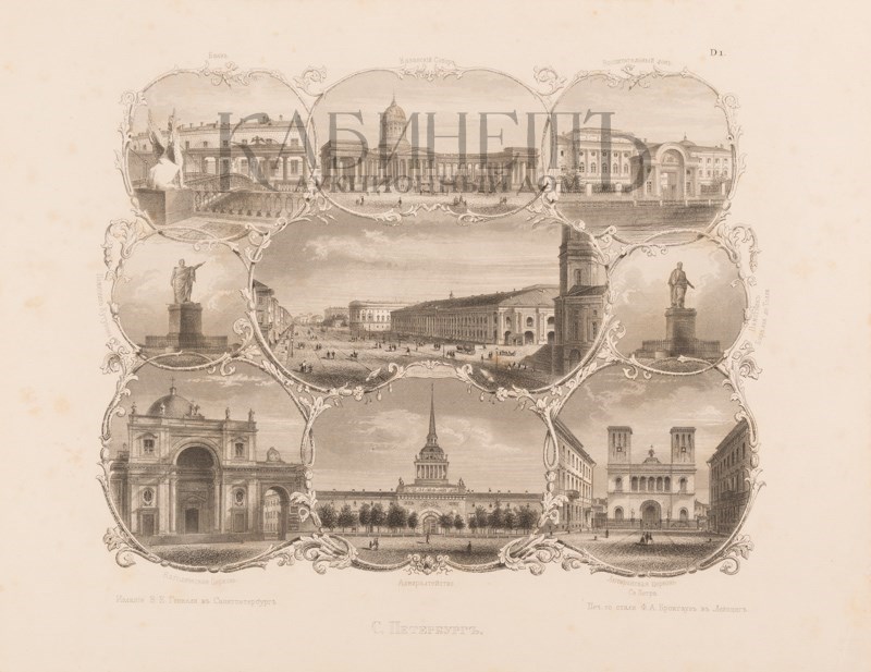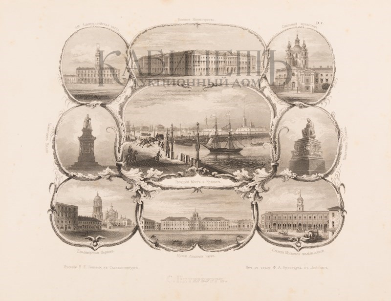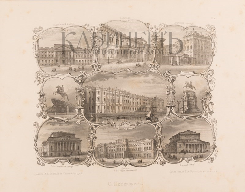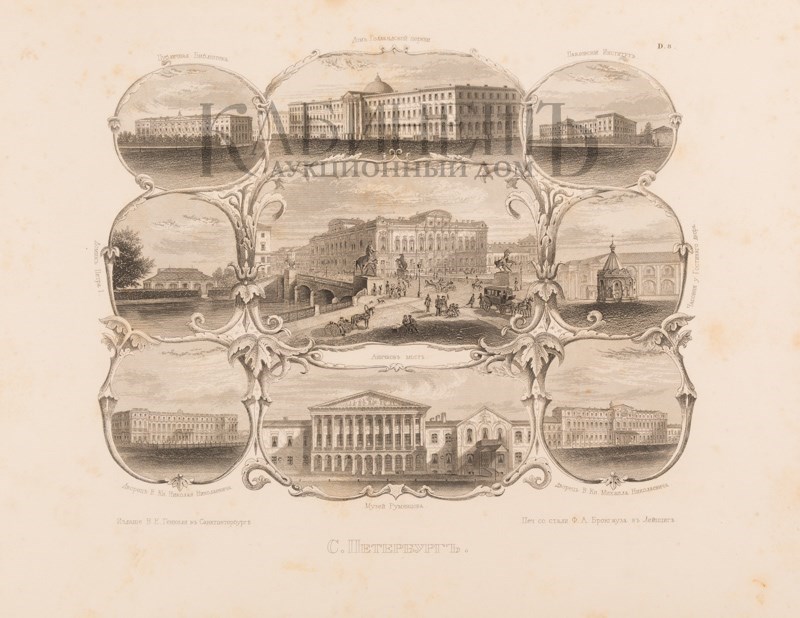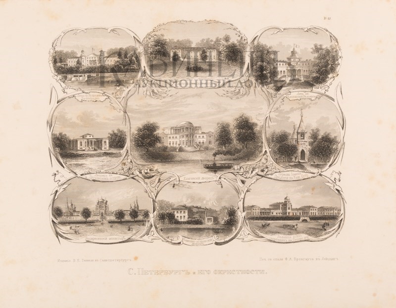 12 л. ил. Гравюры на стали с видами Санкт-Петербурга и пригорода, выполненные Ф.А. Брокгаузом в Лейпциге, на двенадцати отдельных листах.