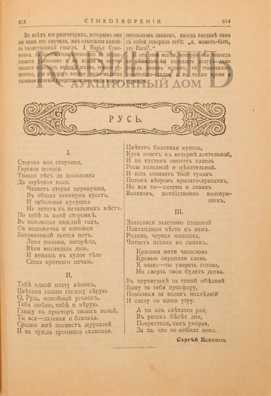 Редкость! Первая публикация стихотворений С. Есенина «Сторона моя, сторонка…», «Тебе одной плету венок…», «Занеслися залетною пташкой…» стр. 614. под общим заглавием «Русь. Стихотворения».