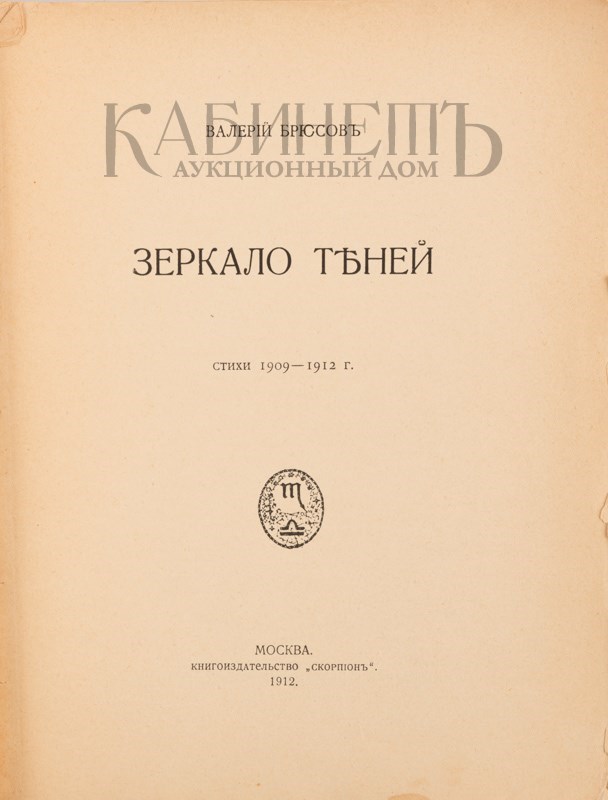 Брюсов В. Зеркало теней. Стихи 1909–1912 годов. Обложка художника Д. Митрохин. М., Книгоизд-во «Скорпион», 1912.