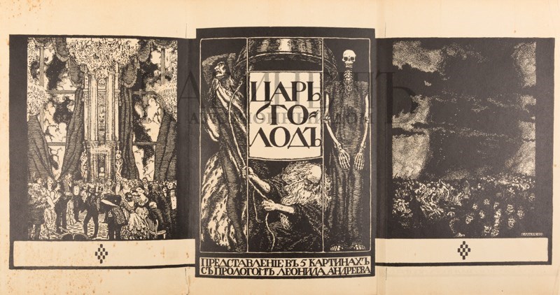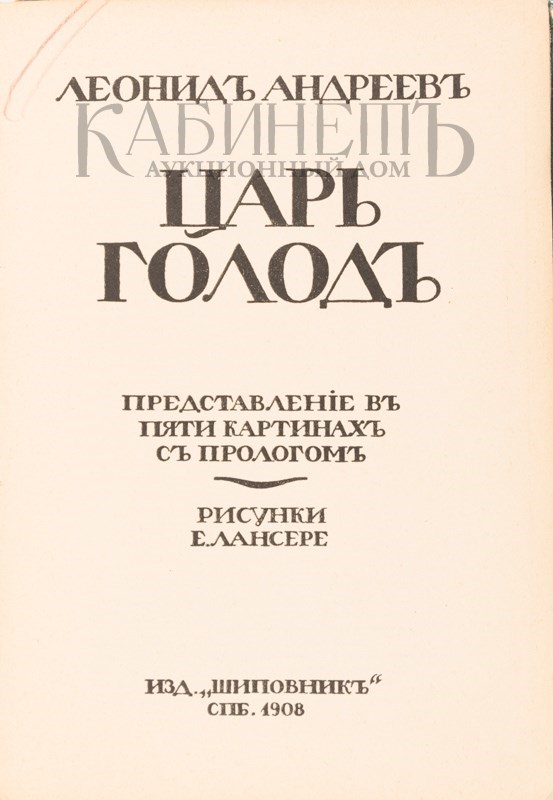Андреев Л. Царь-голод. Представление в пяти картинах с прологом. Рисунки Е. Лансере. СПб., изд. «Шиповник», 1908.