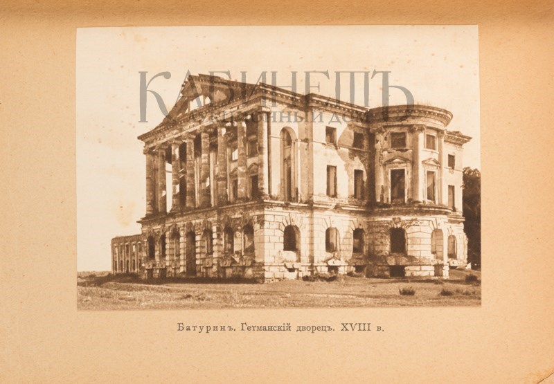 Прижизненное издание видного русского искусствоведа Федора Федоровича Горностаева (1867–1915), посвященное истории сооружения дворцов и храмов, располагавшхся на территории Украины.