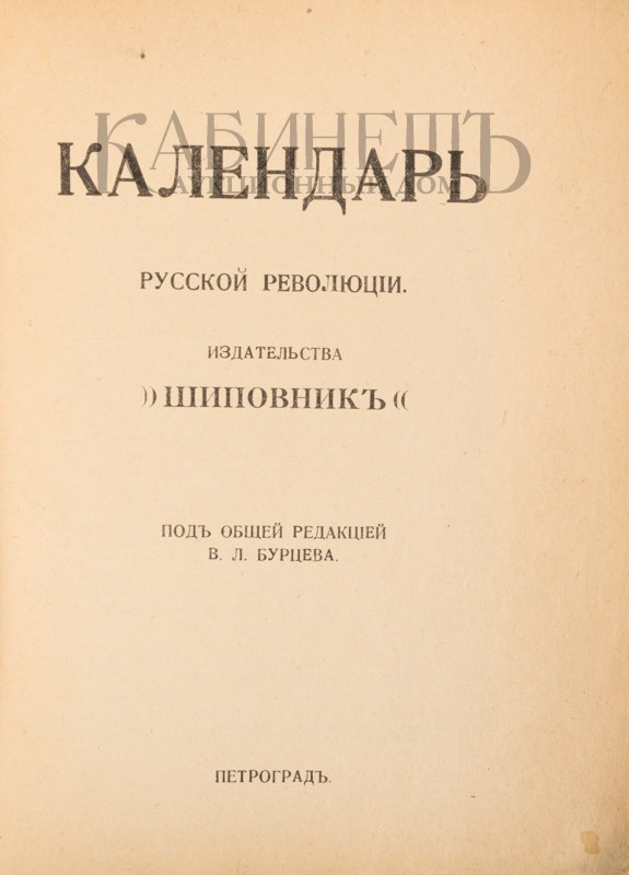 Календарь русской революции. Под общей редакцией В.Л. Бурцева. Пг., издательство «Шиповник», [1917].
