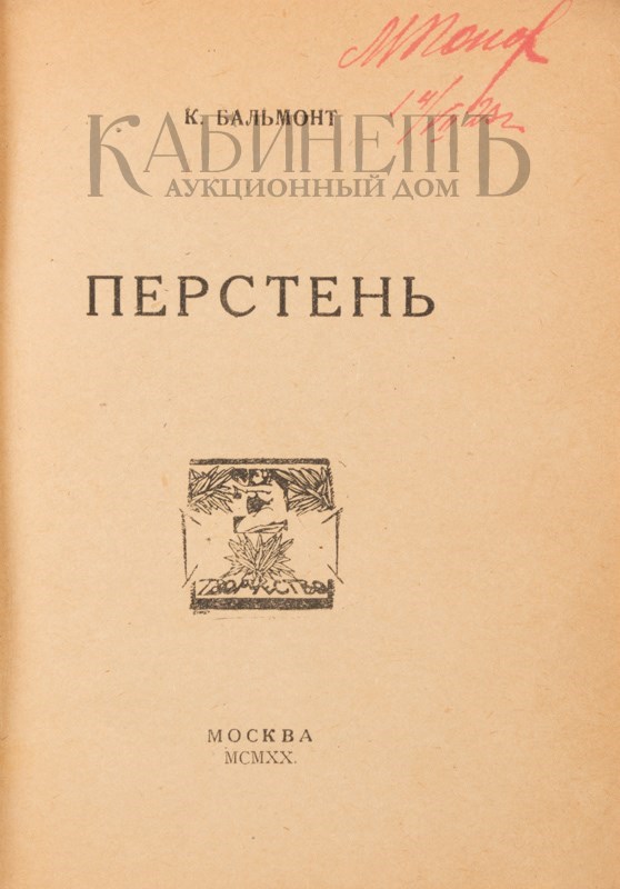 Бальмонт К. Перстень. М., Книгоиздательство «Творчество», 1920.