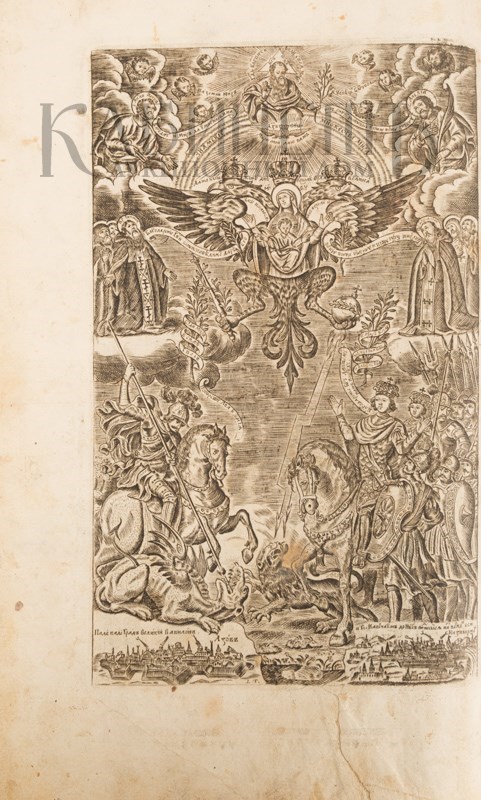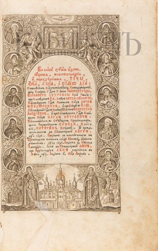 Второе издание. Первое исправленное издание. Множество гравюр в тексте и на отдельных листах. На церковнославянском языке. Книга кириллической печати. Буквицы, виньетки, рамки, заставки, иллюстрации, выполнены в технике гравюр на дереве. Печать в две краски.