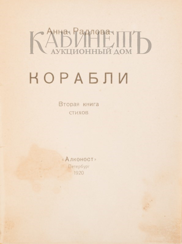Радлова А. Корабли. Вторая книга стихов. Пг., Алконост, 1920.