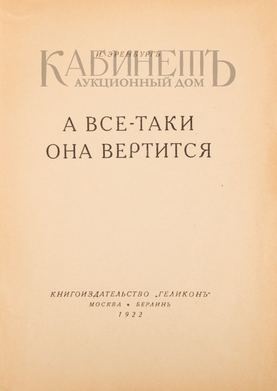 Эренбург И. А все-таки она вертится. М.–Берлин, книгоиздательство «Геликон», 1922.