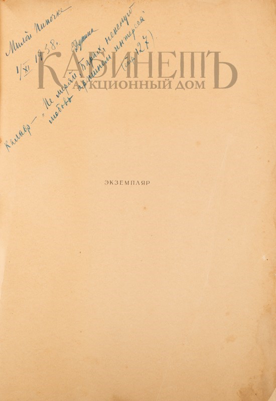 Экземпляр в издательской бумажной обложке, незначительные надрывчики, загрязнения, реставрация по краям обложки, на авантитуле расположена дарственная надпись.