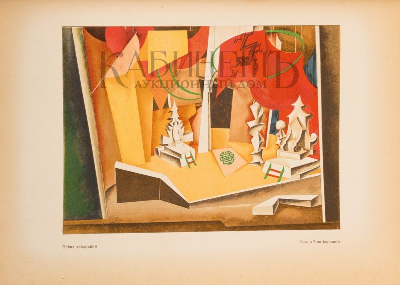 Обложка, виньетки, эскизы декораций и костюмов выполнены в стиле конструктивизма художником Игнатом Нивинским.