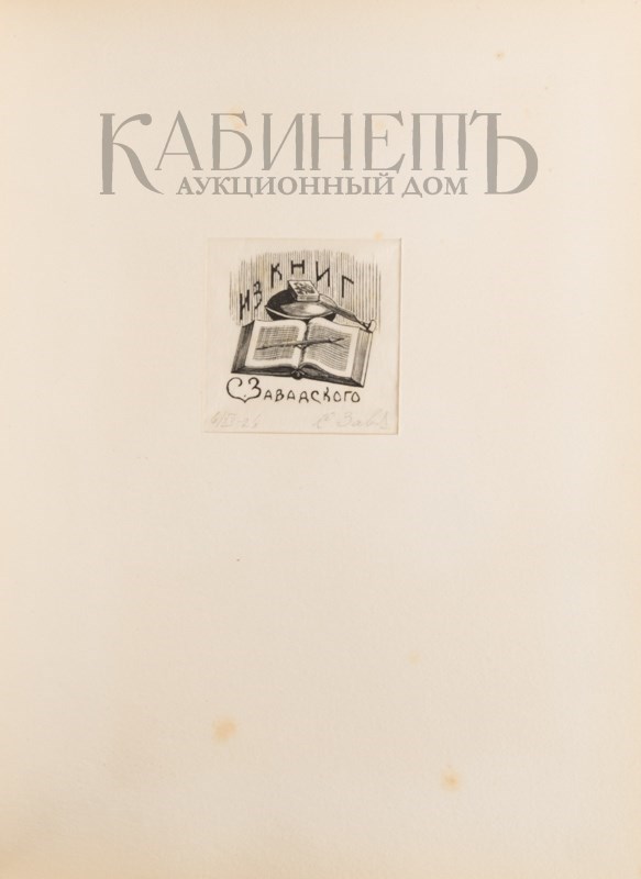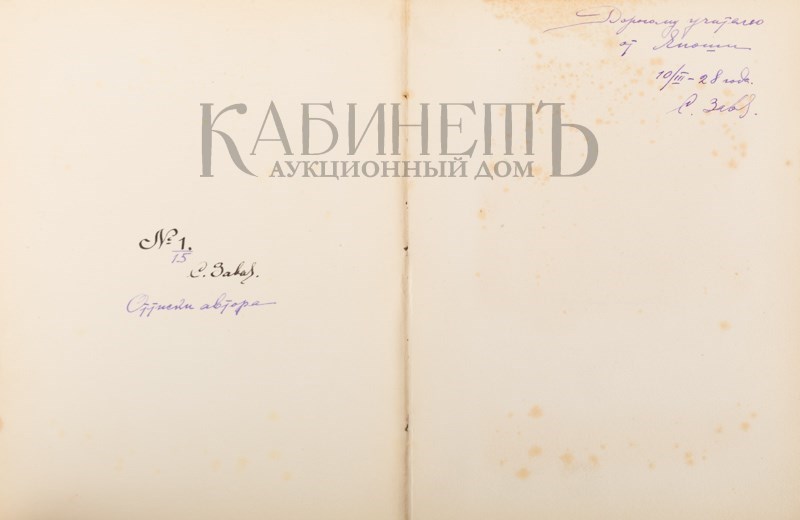 Экземпляр в картонажном переплете. На форзаце автограф С. Завадского: «Дорогому учителю от Япоши. 10/III – 28 года. С. Завад.». Сохранность хорошая, незначительные «лисьи» пятна.