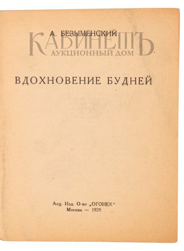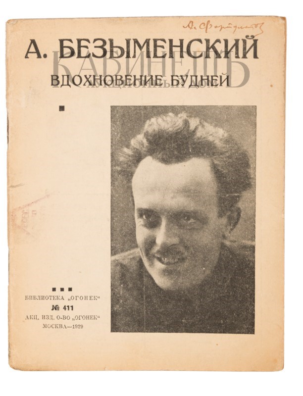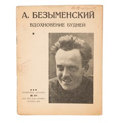 Подборка из 5 предметов: книги Безыменский А. Вдохновение будней. М., Библиотека «Огонек», 1929. и 4-х фотографий поэта А. Безыменского 1970-е гг.