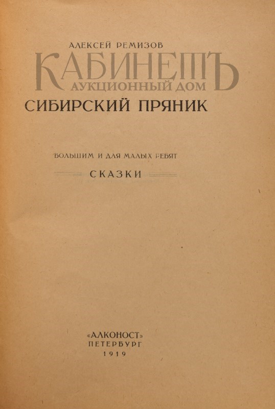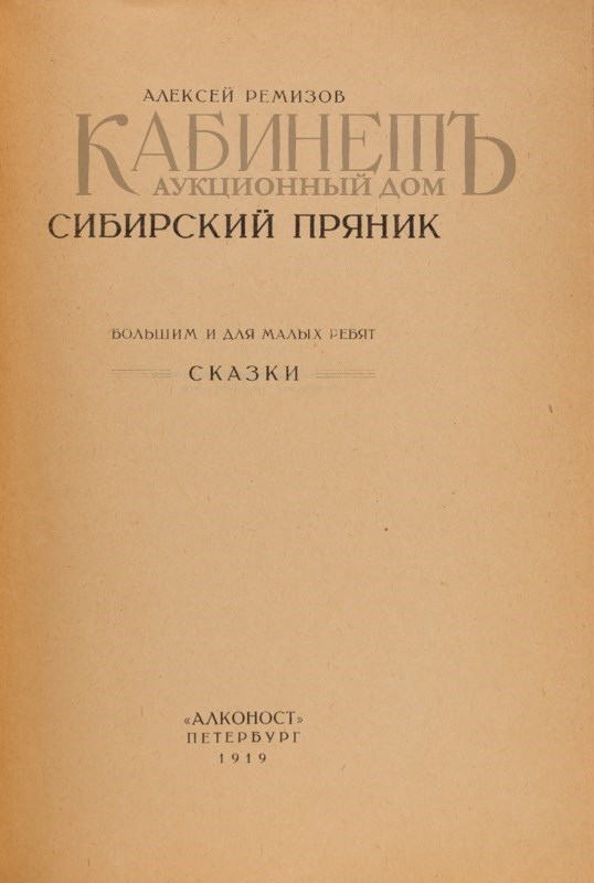 Ремизов А. Сибирский пряник. Большим и для малых ребят сказки. Пг., Алконост, 1919.