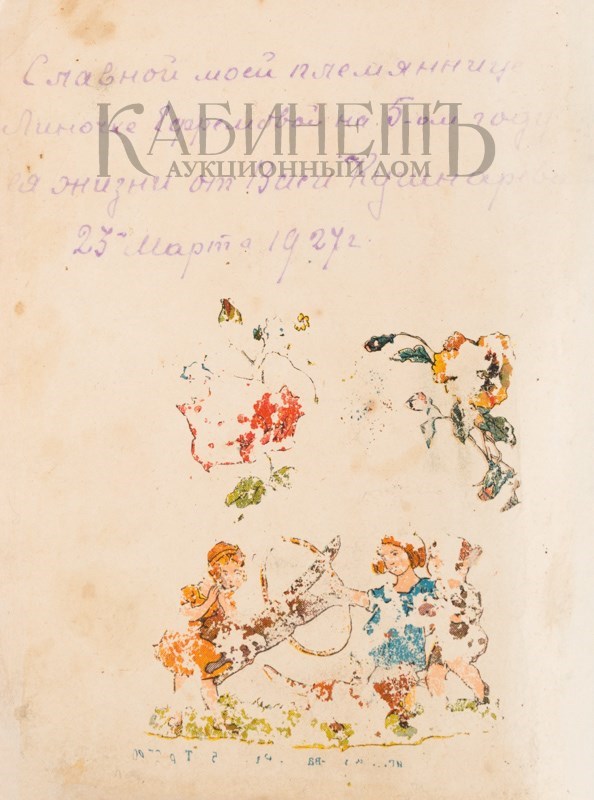 Экземпляр в издательской бумажной обложке, корешок и фрагмент верхней обложки восстановлены, реставрация страниц возле корешка. На всех станицах штемпельный экслибрис: «Василий Петрович Ефремов».