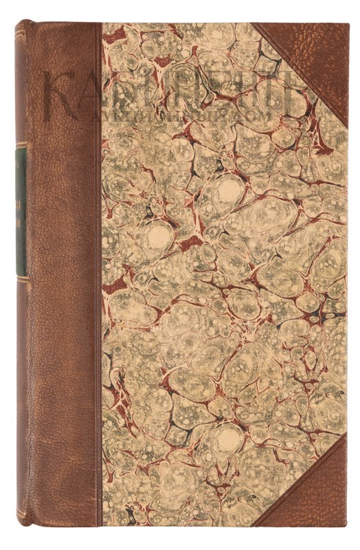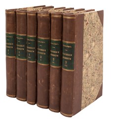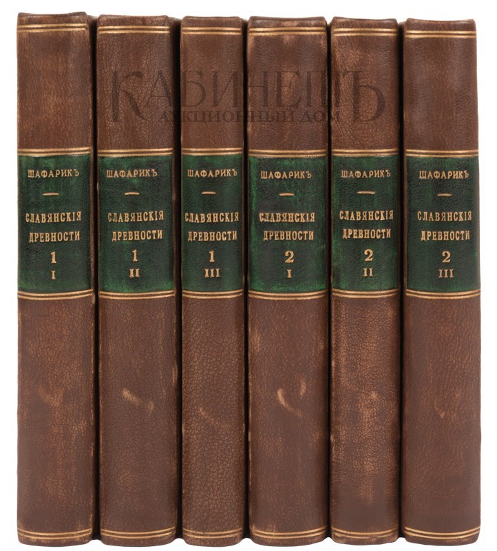 Экземпляр в современных полукожаных переплетах с золотым тиснением по корешкам, тонированные обрезы, ляссе.
