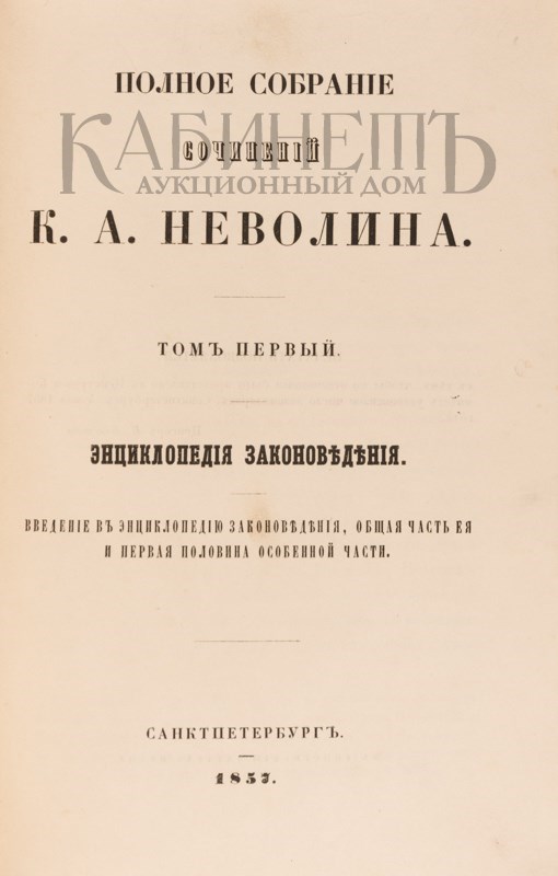 Том I: Энциклопедия законоведения – XXVI, [2], 501 с., 1 л. портрет.