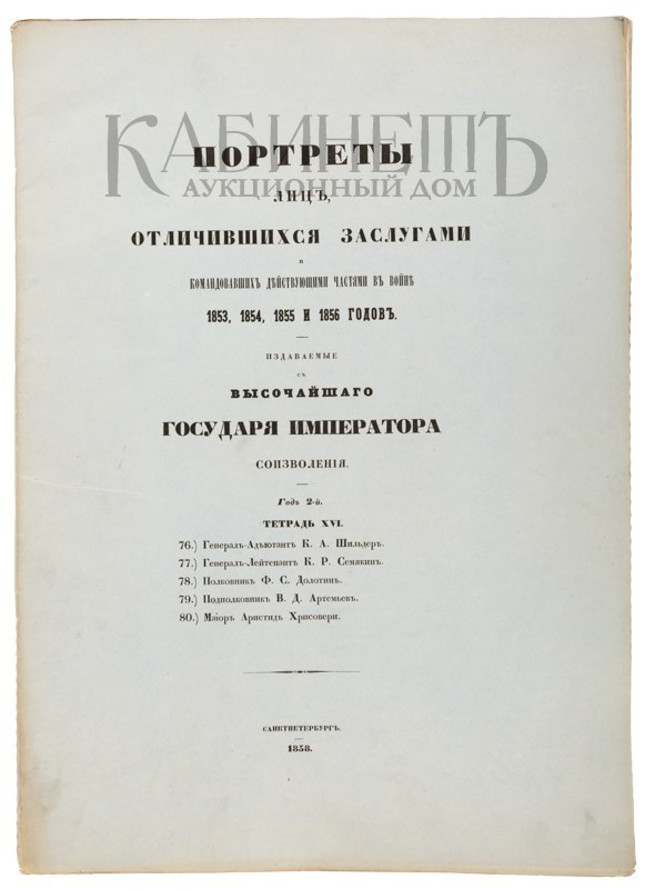 Портреты лиц, отличившихся заслугами и командовавших действующими частями в войне 1853,1854,1855 и 1856 годов. СПб., издаваемые с Высочайшего Государя Императора соизволения, 1858.