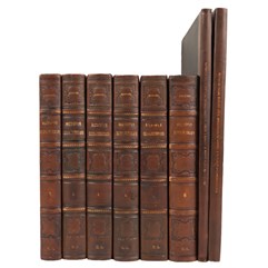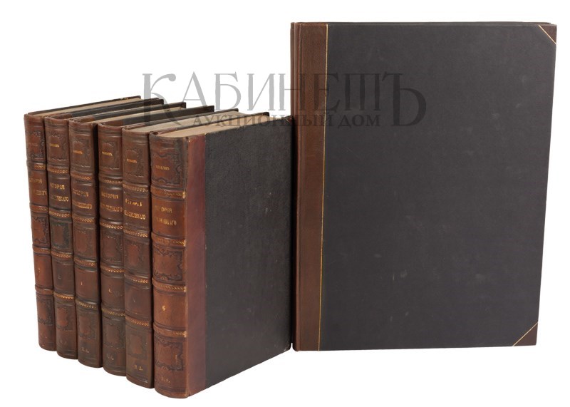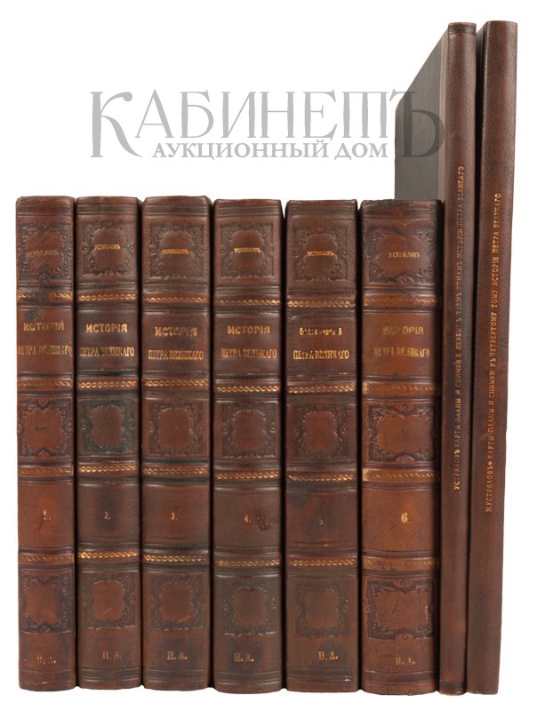 Экземпляр в старинных полукожаных и современных полукожаных переплетах с золотым и блинтовым тиснением по корешкам, на форзацах и титульных листах тома I и VI расположены штемпельные экслибрисы: «ex libis A. J. Passover jurisconsulti». Орешковыми чернилами «Н.А.» – эти тома в старинных полукожаных переплетах. Тома II-IV частьII и 2 атласа в современных полукожаных переплетах. В Атласе №2 –14 л. факсимиле – восстановлены на современной бумаге.
