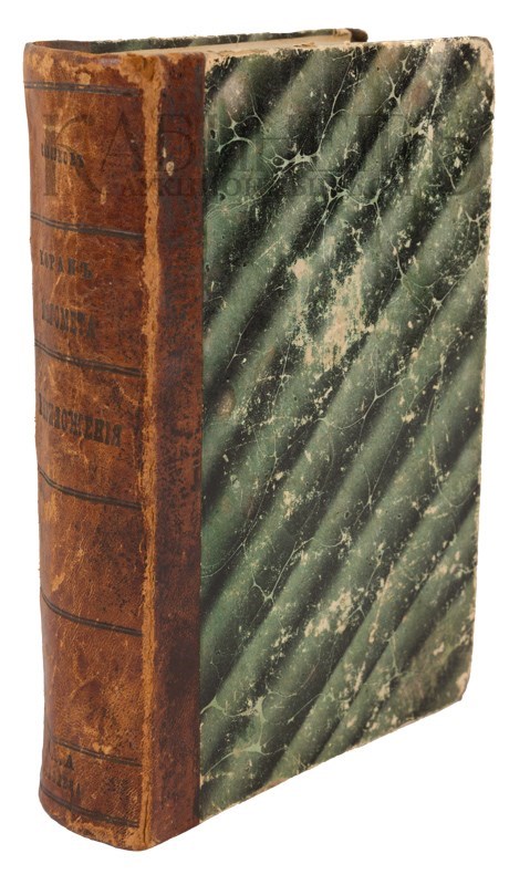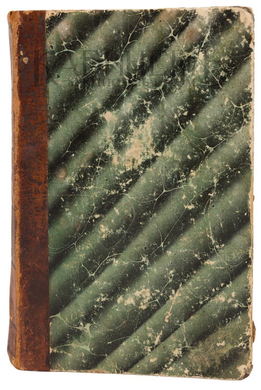 Экземпляр в старинном полукожаном переплете с блинтовым тиснением по корешку, надорван уголок на задней крышке, незначительные потертости переплета, пятна от воды на титульном листе, незначительный фоксинг.