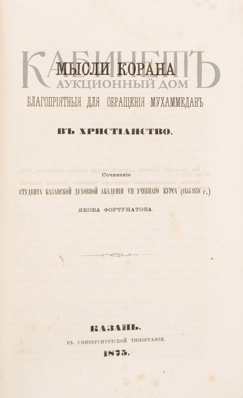 3) Фартунатов Я. Мысли Аль-Корана заимствованные из христианства. Казань, В Университетской типографии, 1875.