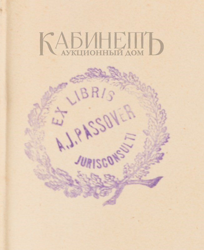 Экземпляр в издательском коленкоровом переплете с золотым тиснением по корешку тонированный обрез. На титульном листе владельческий экслибрис: «Книга из библиотеки A. J. Passover».