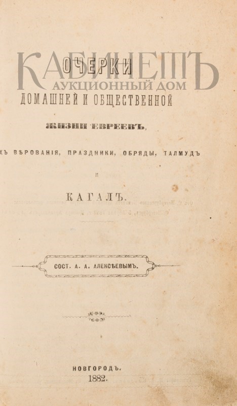 1) Алексеев А.А. Очерки домашней и общественной жизни евреев, их верования, праздники, обряды, талмуд и кагал. Новгород, типография М. А. Классон, 1882.