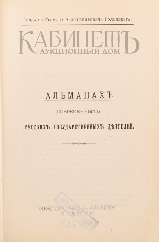 Альманах современных русских государственных деятелей. СПб., типография И. Гольдберга, 1897.