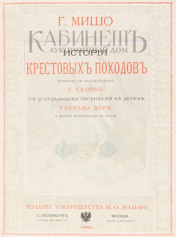 Мишо Ж.Ф. История крестовых походов. С 32 отдельными рисунками на дереве Густава Доре и многими политипажами в тексте. СПб.– М., издание Товарищества М.О. Вольф, 1884.