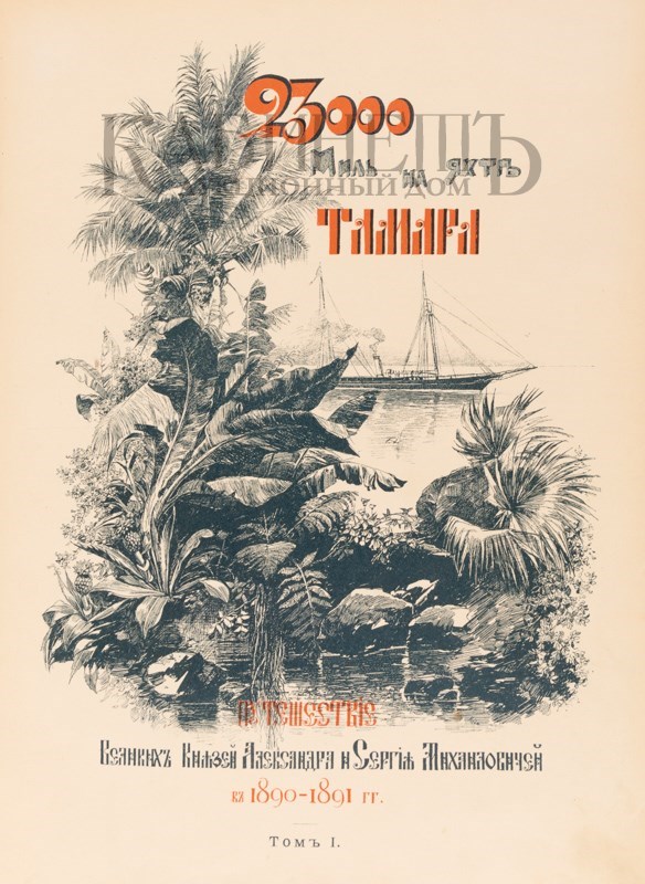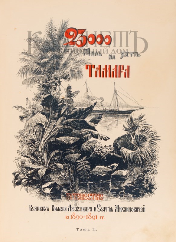 23 000 миль на яхте «Тамара». Путешествие Их Императорских Высочеств Великих князей Александра и Сергея Михайловичей в 1890–1891 гг. Путевые впечатления д-ра Г.И. Радде. Иллюстрировано академиком Н.С. Самокишем. В 2-х томах. СПб., типография Э. Гоппе, 1892 –1893.
