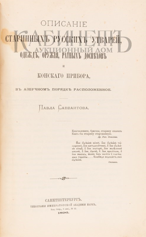 Савваитов П. Описание старинных русских утварей, одежд, оружия, ратных доспехов и конского прибора, в азбучном порядке расположенное. СПб., типография Императорской Академии наук, 1896. Рисунки старинных царских утварей, одежд, доспехов и прочее к описанию П. Саввантова. СПб., литография К. де Кастелли, 1896.