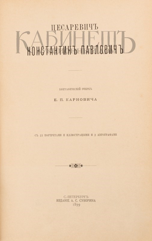 Карнович Е.П. Цесаревич Константин Павлович. СПб., издание А.С. Суворина, 1899.
