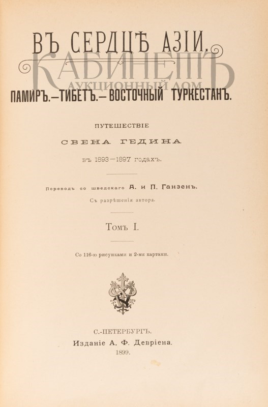 Гедин С. В сердце Азии. Памир – Тибет – Восточный Туркестан. Путешествие Свена Гедина в 1893–1897 годах. Перевод со шведского. С разрешения автора. В двух томах в двух книгах. СПб., издание А.Ф. Девриена, 1899.