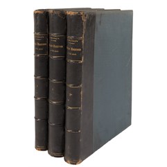 Экземпляр в старинных полукожаный переплетах мастерской «Пецмана», незначительные потертости переплета, мелкие утраты по краям корешков, сохранены ляссе, торшонированные обрезы.