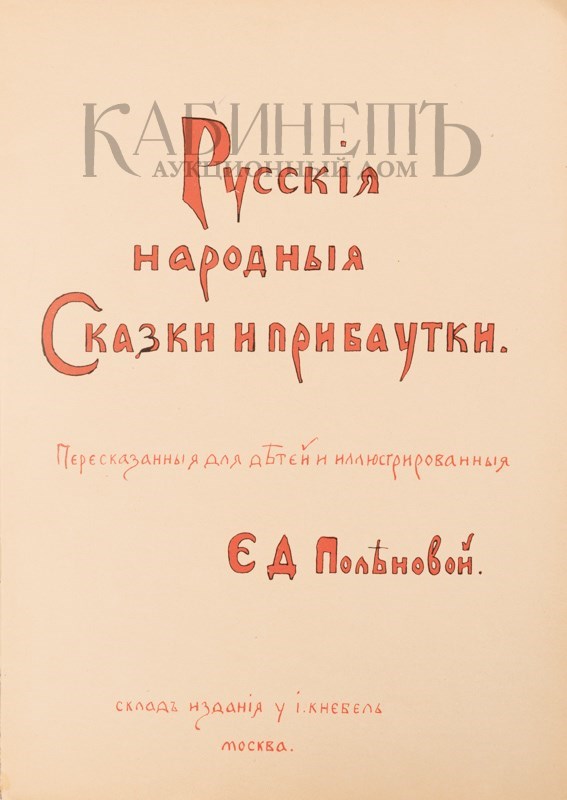 Русские народные сказки и прибаутки, пересказанные для детей и иллюстрированные Е.Д. Поленовой. М., склад издание у И. Кнебель, 1900- е гг.