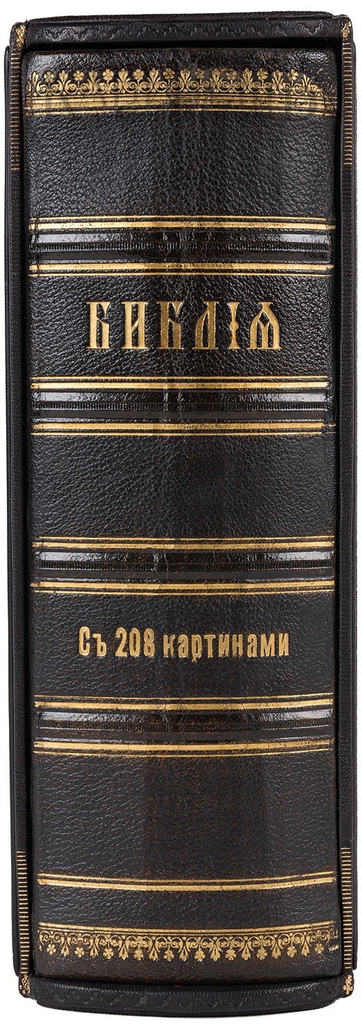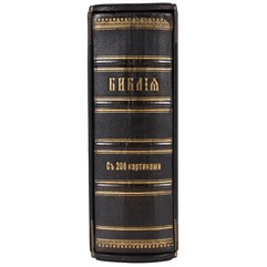 Экземпляр в издательском полукожаном переплете с золотым тиснением по корешку и верхней крышке, тонированный обрез, для издания изготовлен цельнокожаный футляр с золотым тиснением.