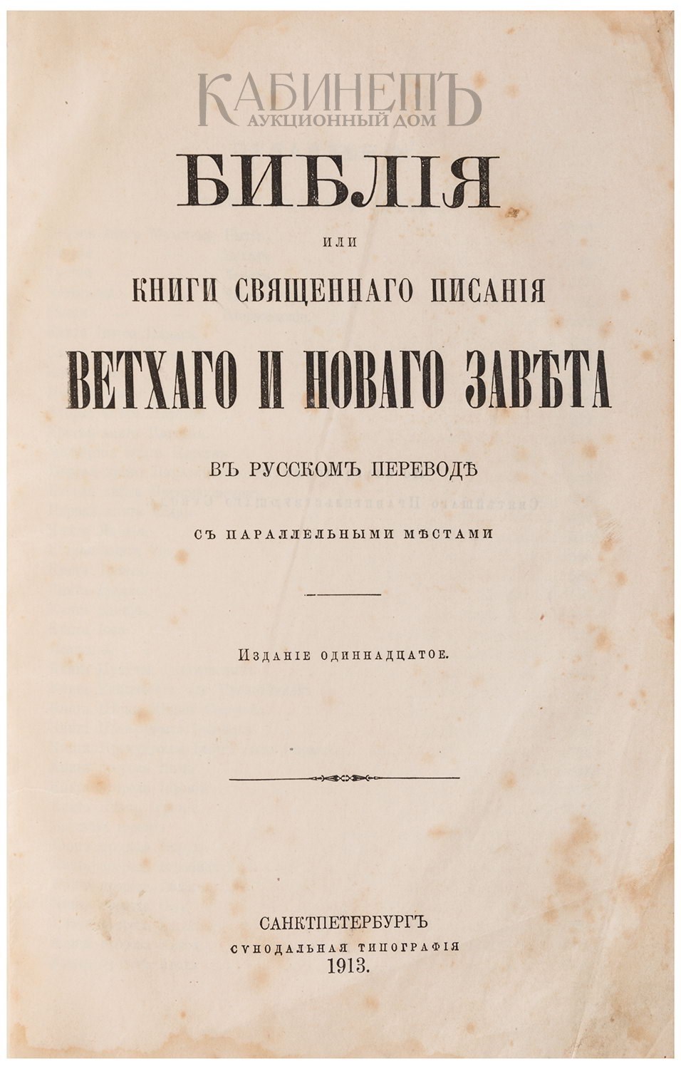 Библия, или Книги Священного Писания Ветхого и Нового завета в русском переводе с параллельными местами. Издание одиннадцатое. СПб., Синодальная типография, 1913.