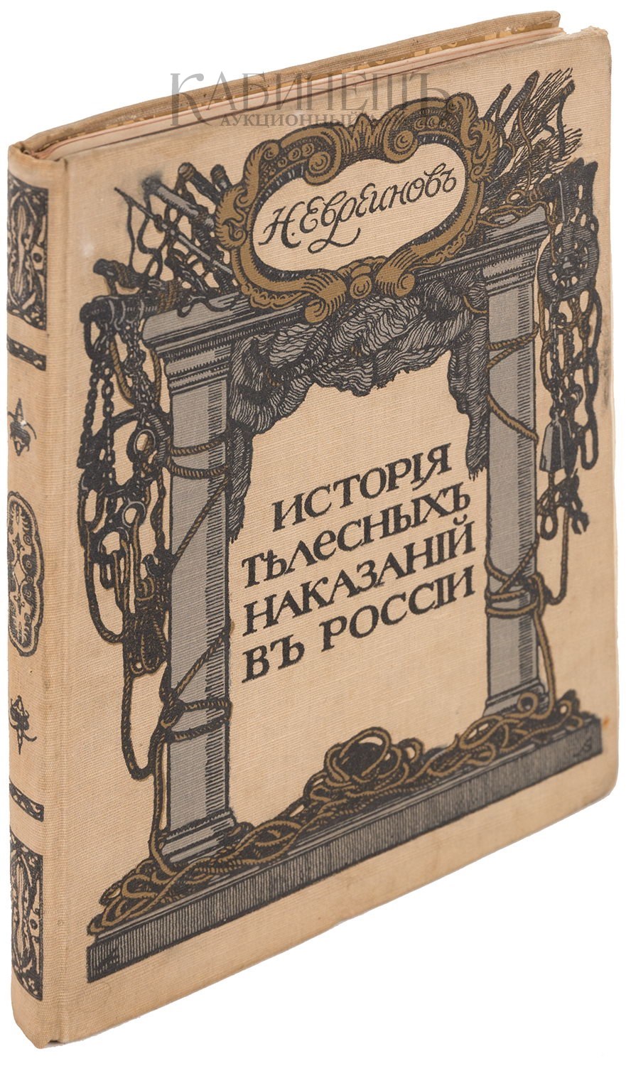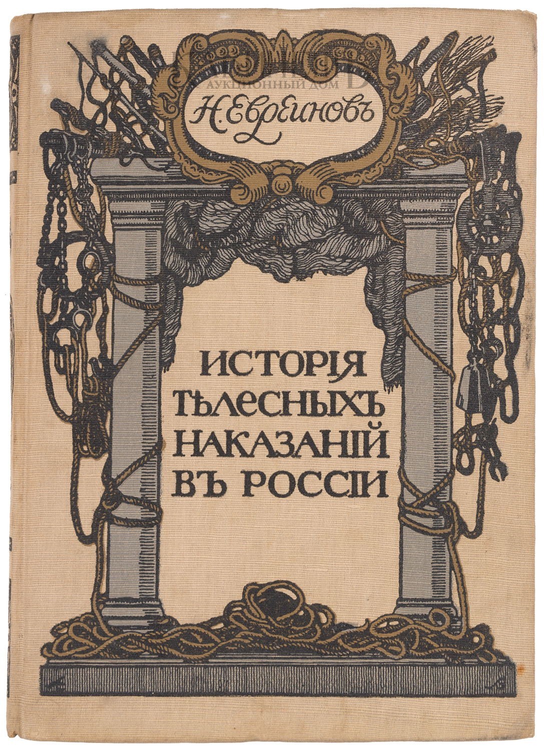 Экземпляр в издательском тканевом переплете с полихромным тиснением по крышкам и корешку, незначительные загрязнения. Евреинов Николай Николаевич (1879–1953) – русский и французский режиссёр, драматург, теоретик и новатор театра, историк театрального искусства, философ, музыкант, художник и психолог. Историческое исследование Н.Евреинова о телесных наказаниях в России, является рефератом его выпускного сочинения, написанного в 1901 г., в Императорском училище правоведения.
