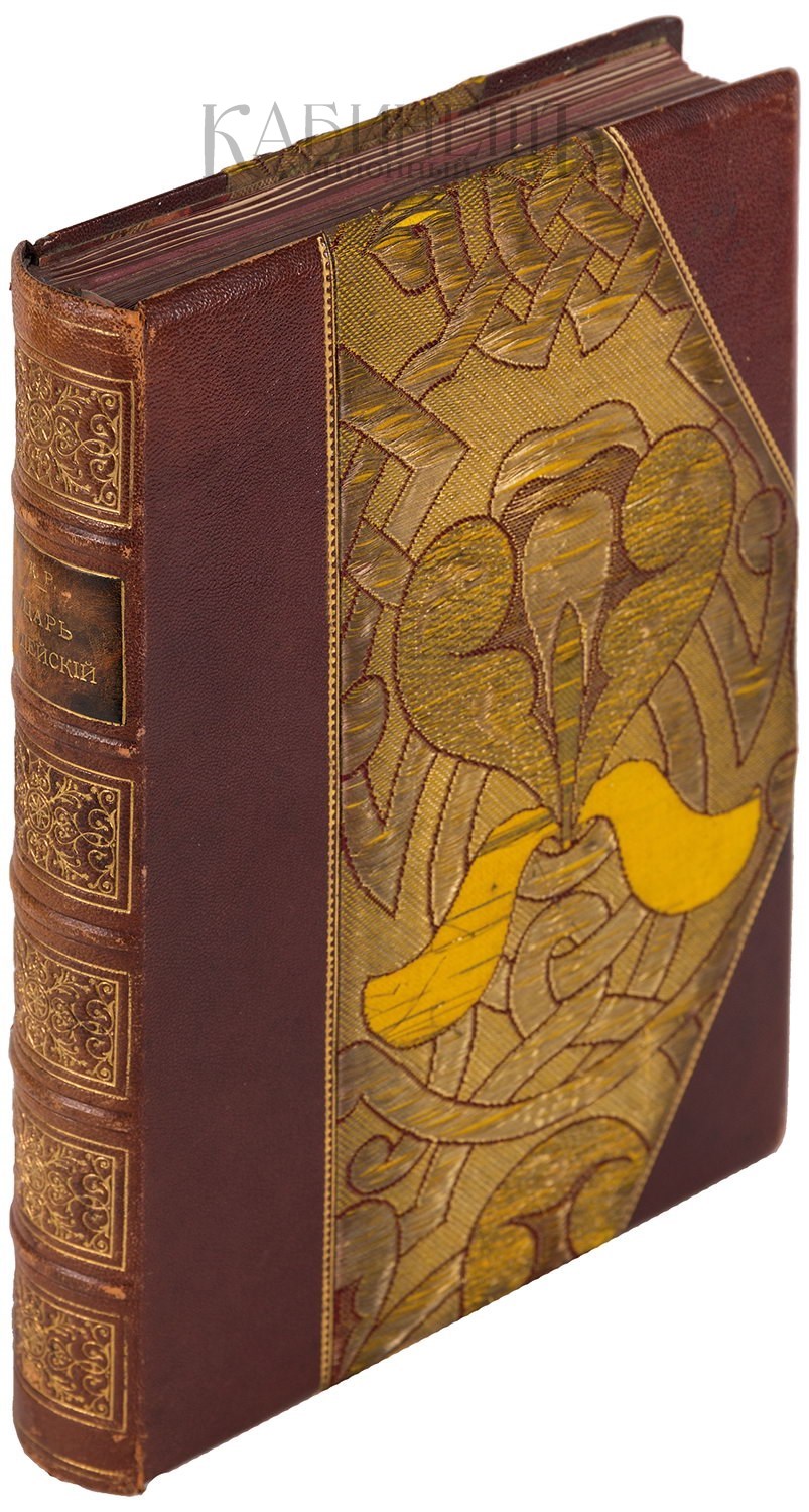 Экземпляр в подарочном полукожаном переплете с парчовой тканью с золотой нитью на крышках, с золотым тиснением по корешку, торшонированный обрез, уникальный владельческий переплет.