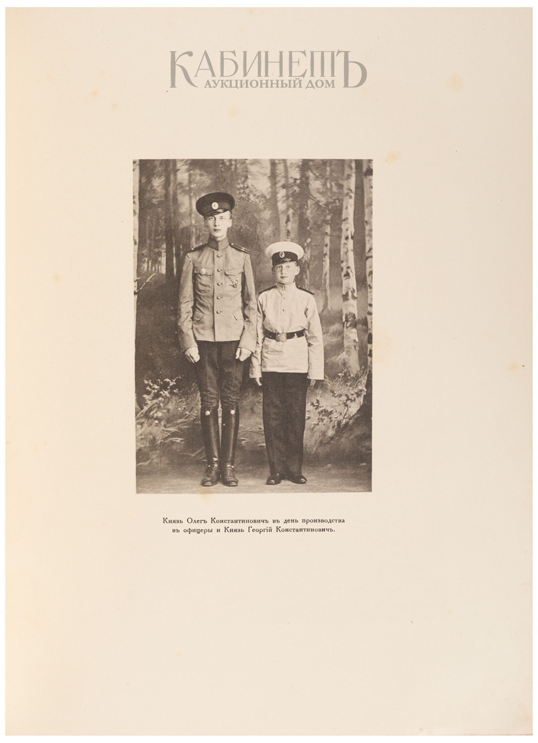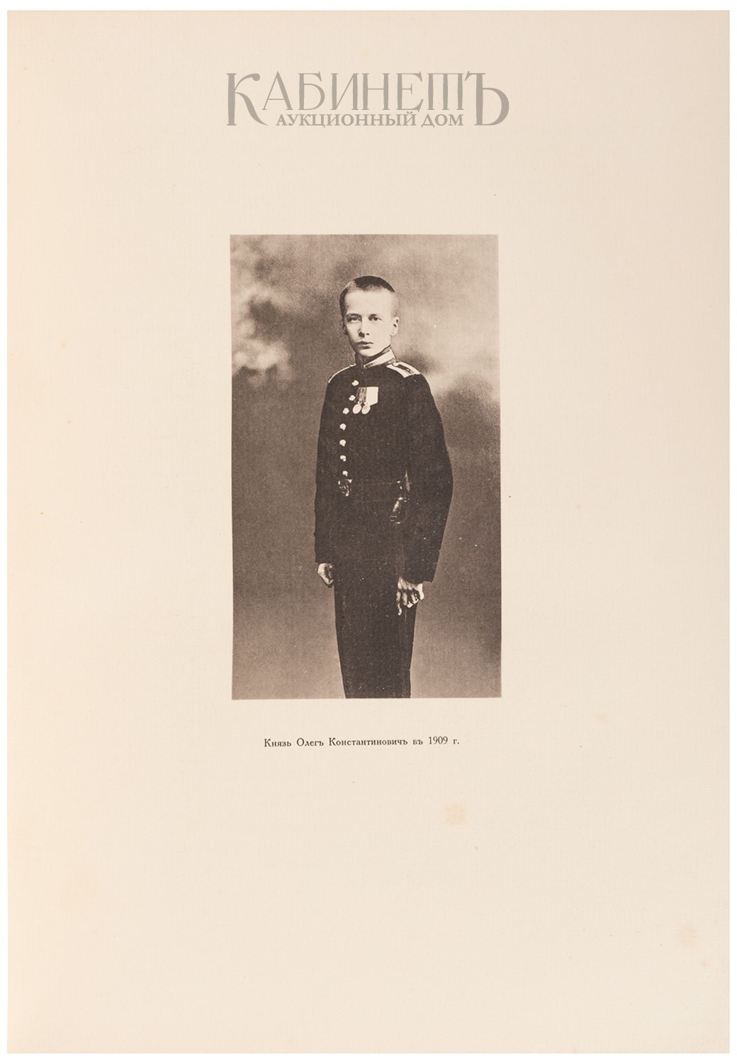 Книга с большим количеством фотографий о жизни князя Олега Константиновича Романова (1892–1914), правнука императора Николая I, сына Великого князя Константина Романова, писавшего под псевдонимом К.Р. Князь Олег погиб на фронте во время Первой мировой войны.