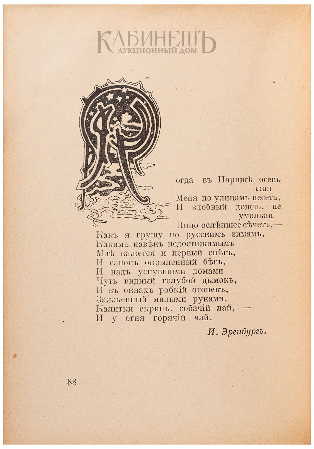 Прижизненные публикации стихов К.Бальмонта, И.Бунина, З.Гиппиус, Н.Крандиевской, Д.Мережковского, Ф. Сологуба, И.Эренбурга.